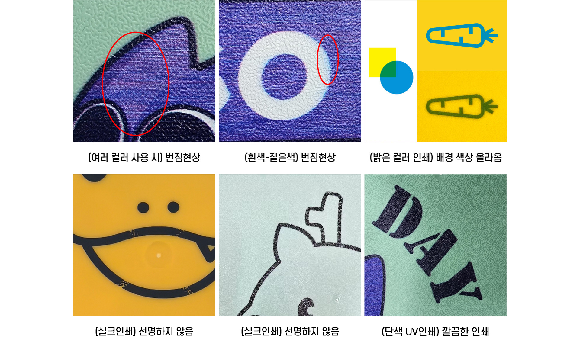 ※ 재질 특성상 대비가 심하거나 여러 색상이 혼용된 디자인을 인쇄하실 경우 인쇄가 번지거나 흐리게 인쇄될 수 있으며, 이는 불량 사유가 되지 않습니다.